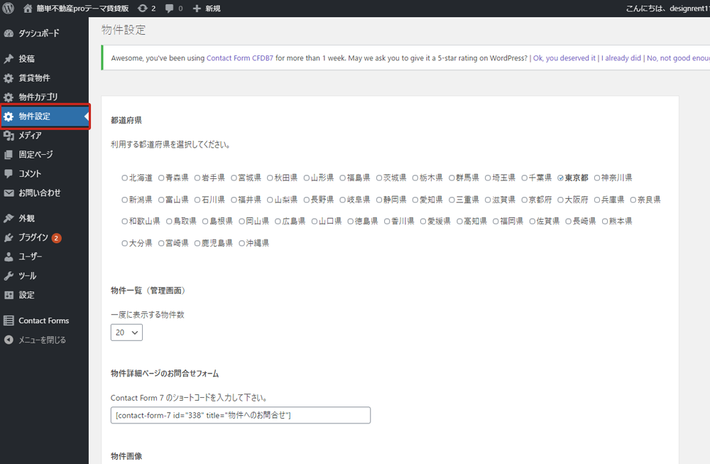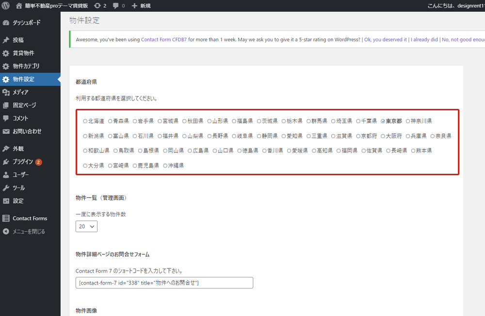 ここで設定したエリアは、物件登録画面での所在地の都道府県に反映されます。
