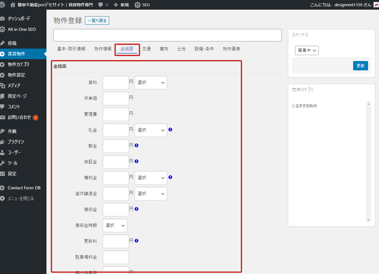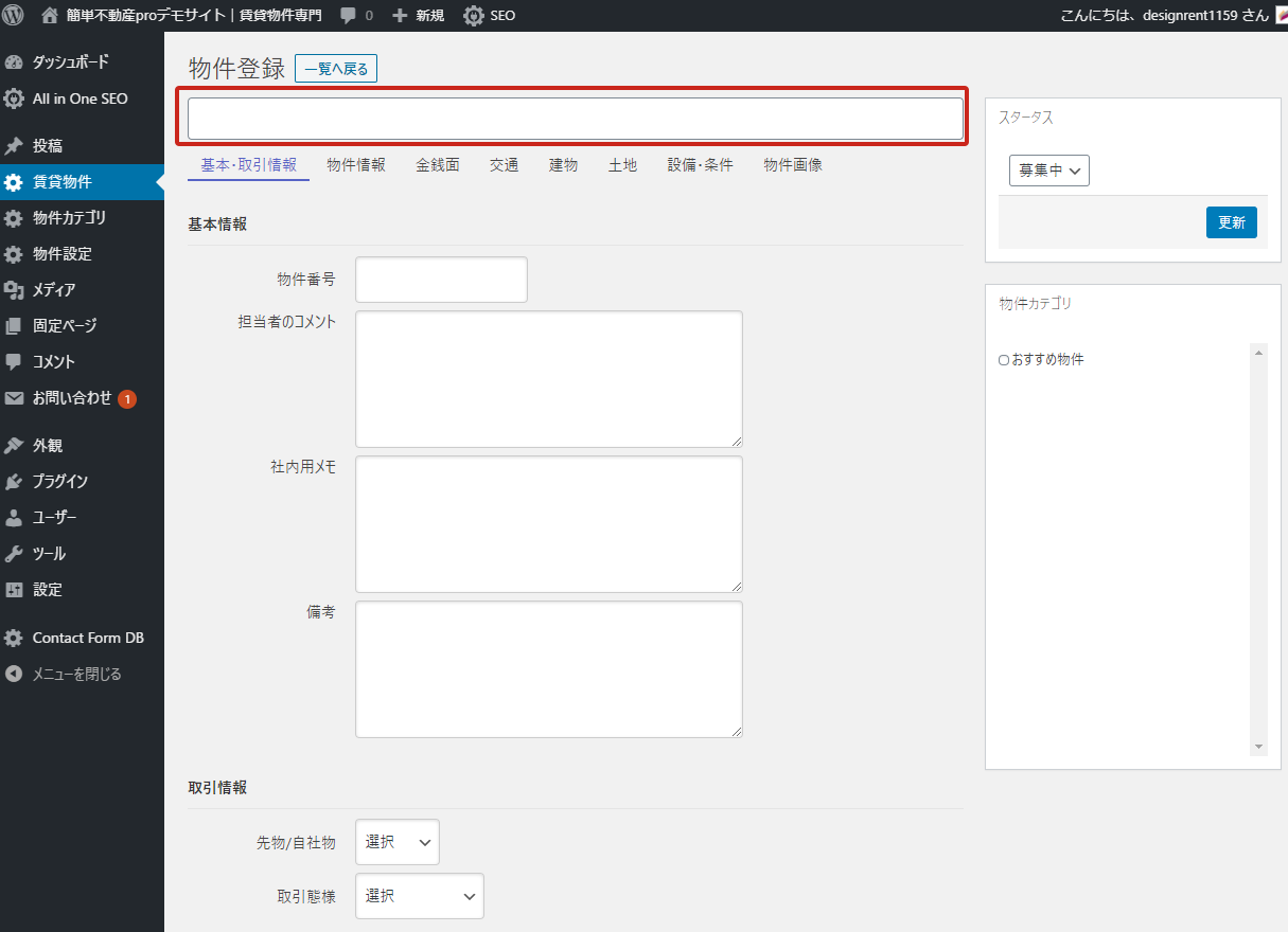 最初に物件タイトルを入力します。物件タイトルは必須です。