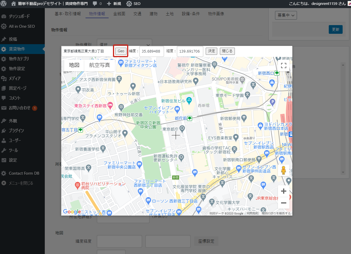 中央の十字アイコンが物件の位置にあるのを確認し、「決定」をクリックします。