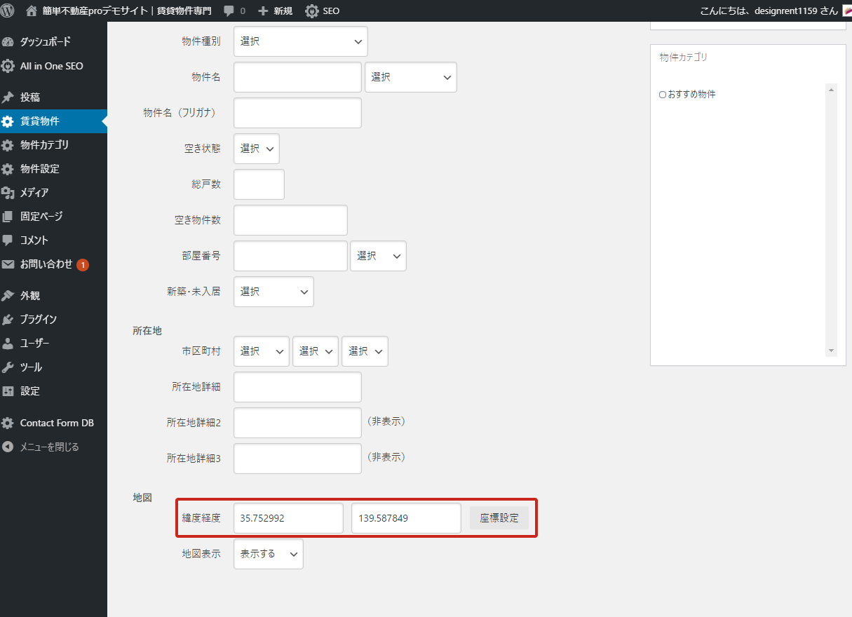 入力が終わったら、「更新」をクリックして物件登録を完了します。