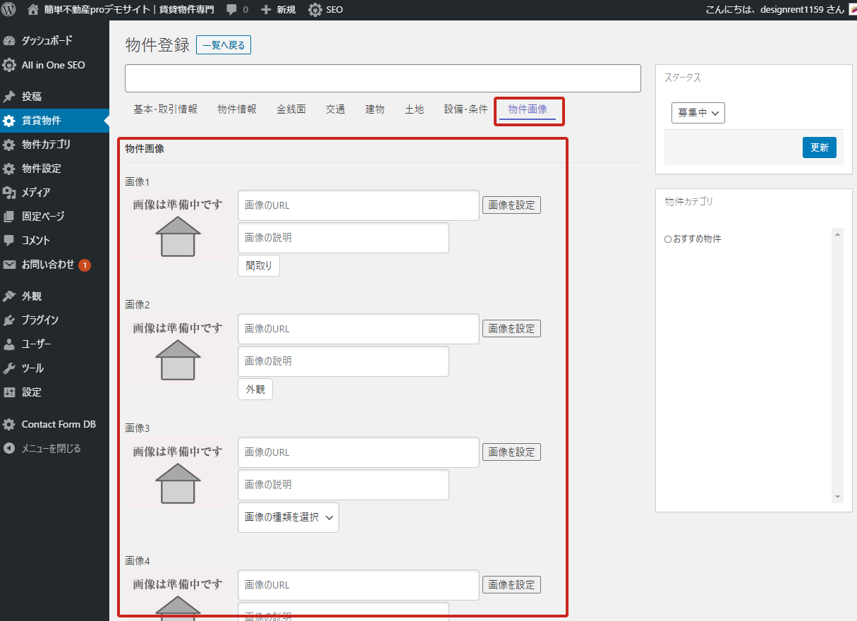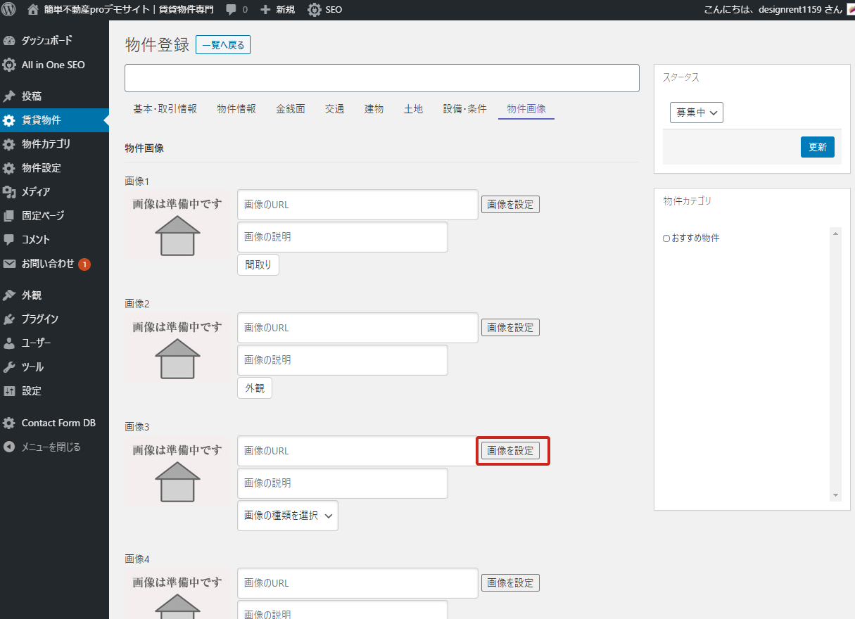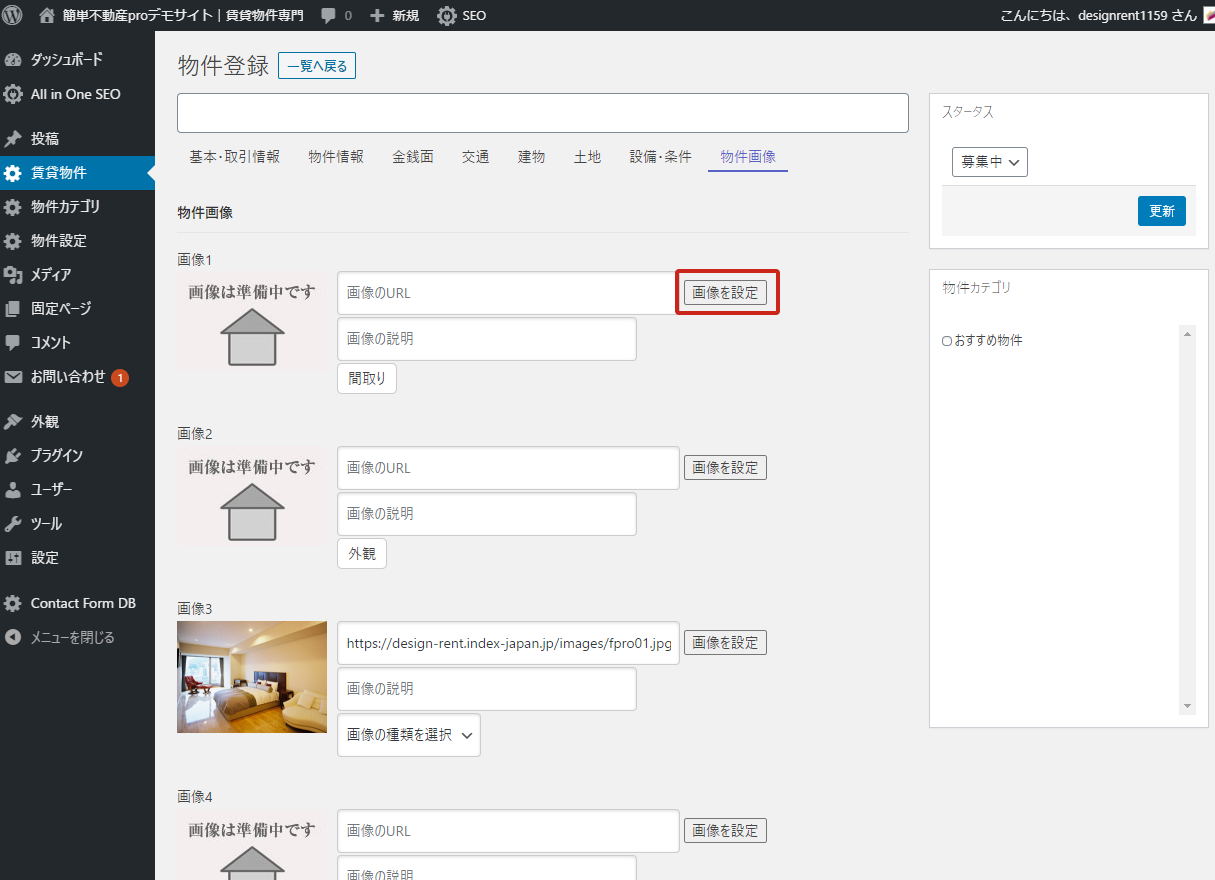 但し、1枚目は「間取り図」、2枚目は物件の「外観画像」を設定します。