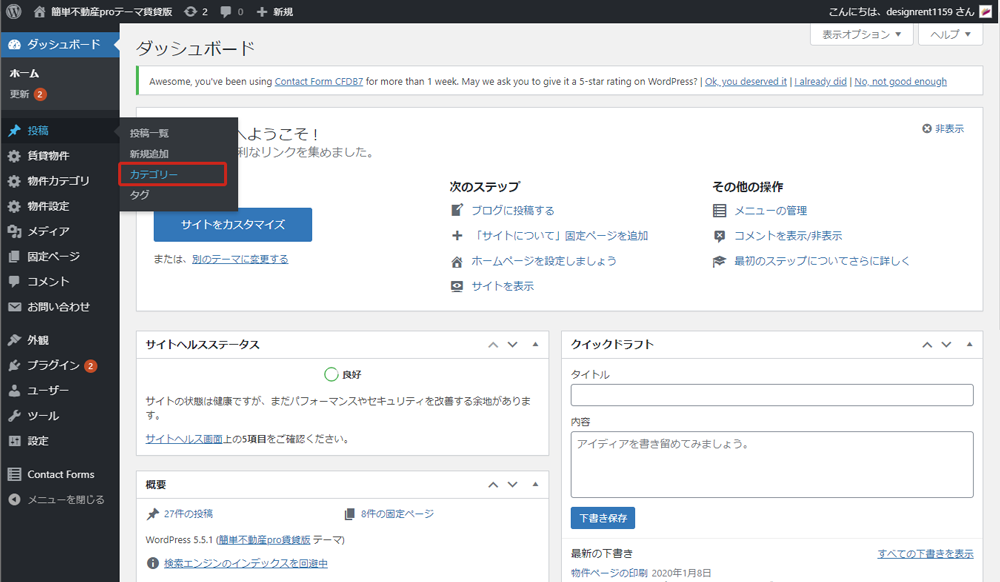 カテゴリーに「お知らせ」も追加され、必要な投稿カテゴリーが設定できました。