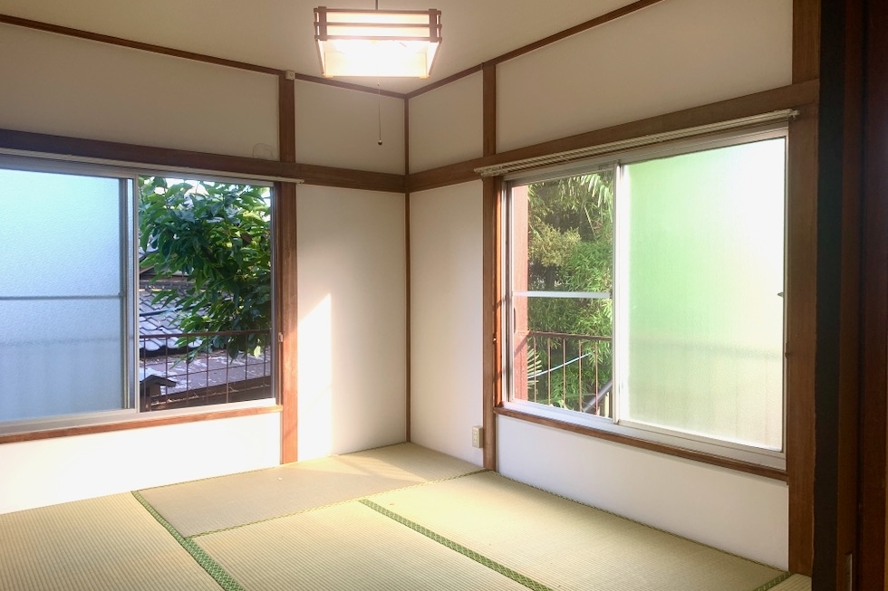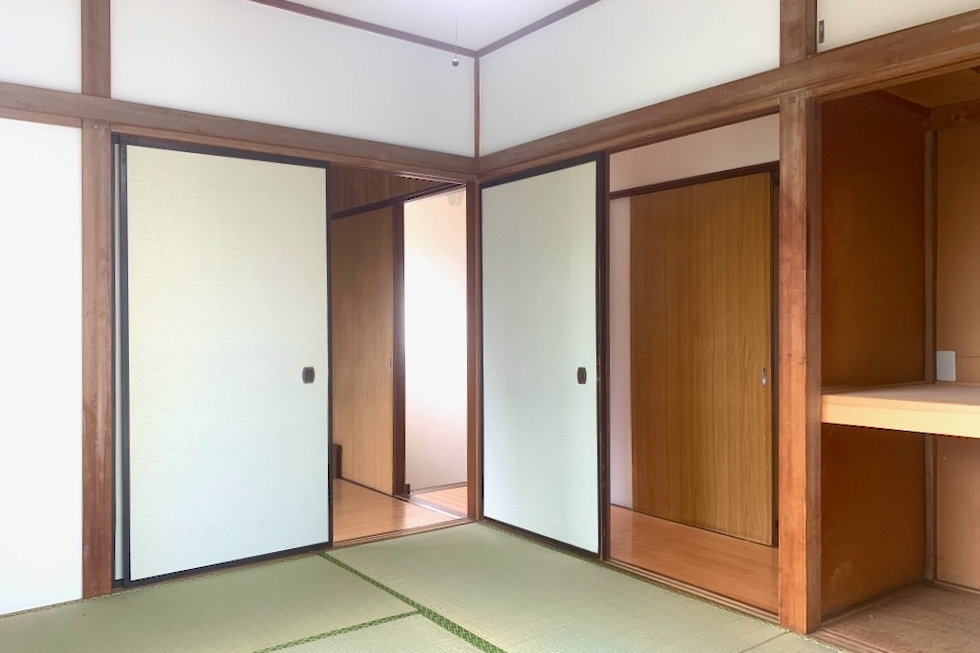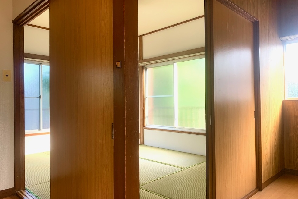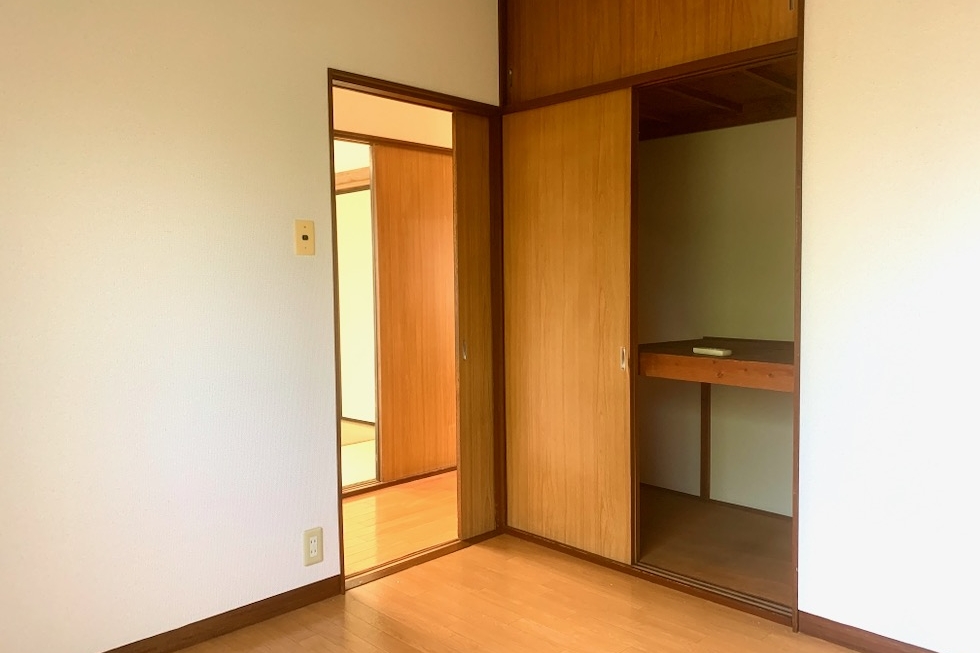 2階は個室が4部屋。洋室と和室、それぞれ収納があり家族それぞれの個室にしたり、ルームシェアなどでも良さそうでした。狭いですが、ベランダもあります。